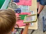 Am Mittwoch, den 25.06.2025, haben wir in der Schule Papier geschöpft. An den vorherigen Tagen haben wir Papier kleingeschnitten und in Wasser eingeweicht .Ein paar Tage später kamen Personen vom KLIMO-Projekt und haben mit uns Papier geschöpft. Wir haben die Kisten mit dem eingeweichten Papier auf die Tische gestellt und direkt losgelegt. Dann haben wir mit speziellen Sieben die Papierschnipsel aus dem Wasser gesiebt. Danach haben wir es trocken getupft und zum Trocknen auf Unterlagen gelegt. Nochmal ein paar Tage später kamen sie wieder und haben mit uns aus dem neuen Papier kleine Notizbücher gebastelt. Am Ende haben wir sie mit getrockneten Blumen dekoriert. Es war sehr toll, die Arbeit hat sich gelohnt!