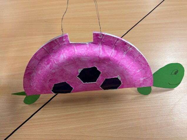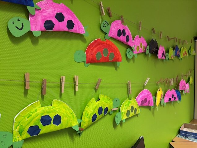 Mit viel Geduld wurde geprickelt, geschnitten, geklebt und gemalt. Dabei entstanden bunte, leuchtende Schildkröten, die beim kommenden Martinsumzug im November sicher für große Begeisterung sorgen werden.