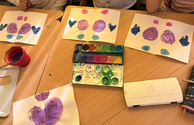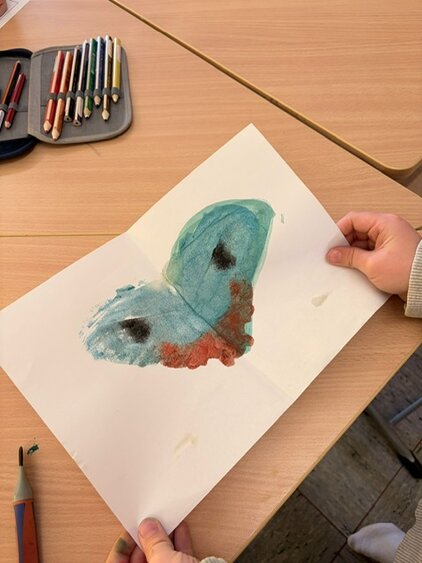 Die Klasse 2c entdeckt spielerisch die Achsensymmetrie